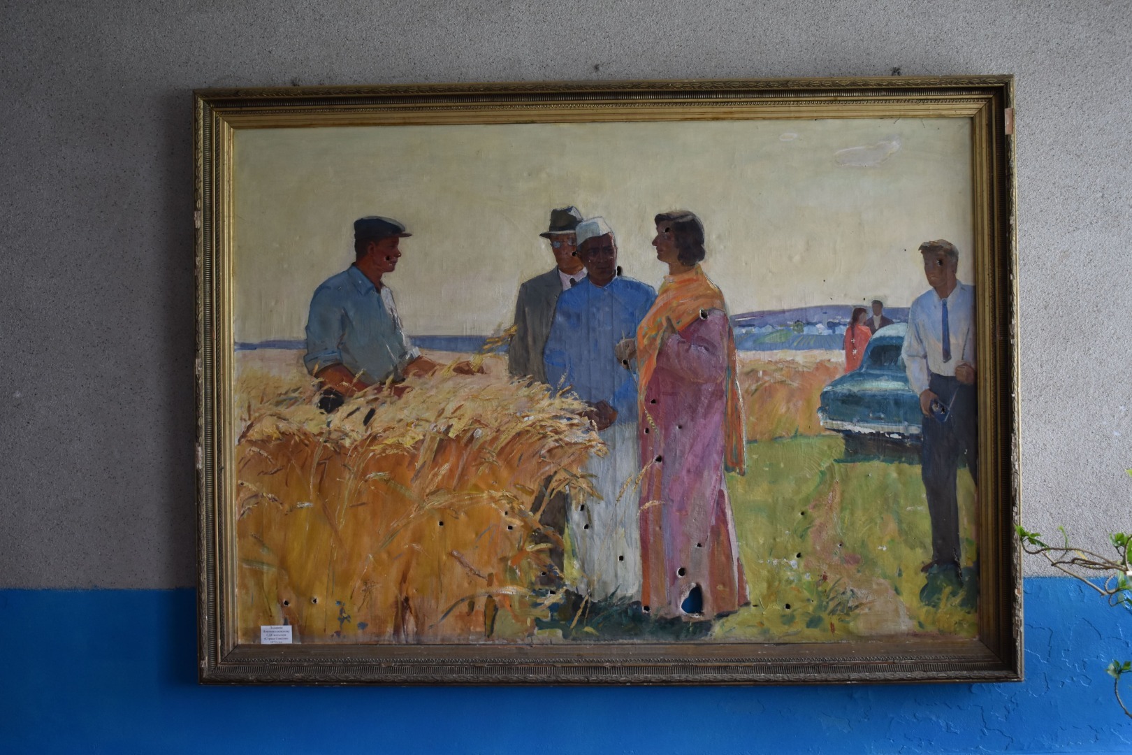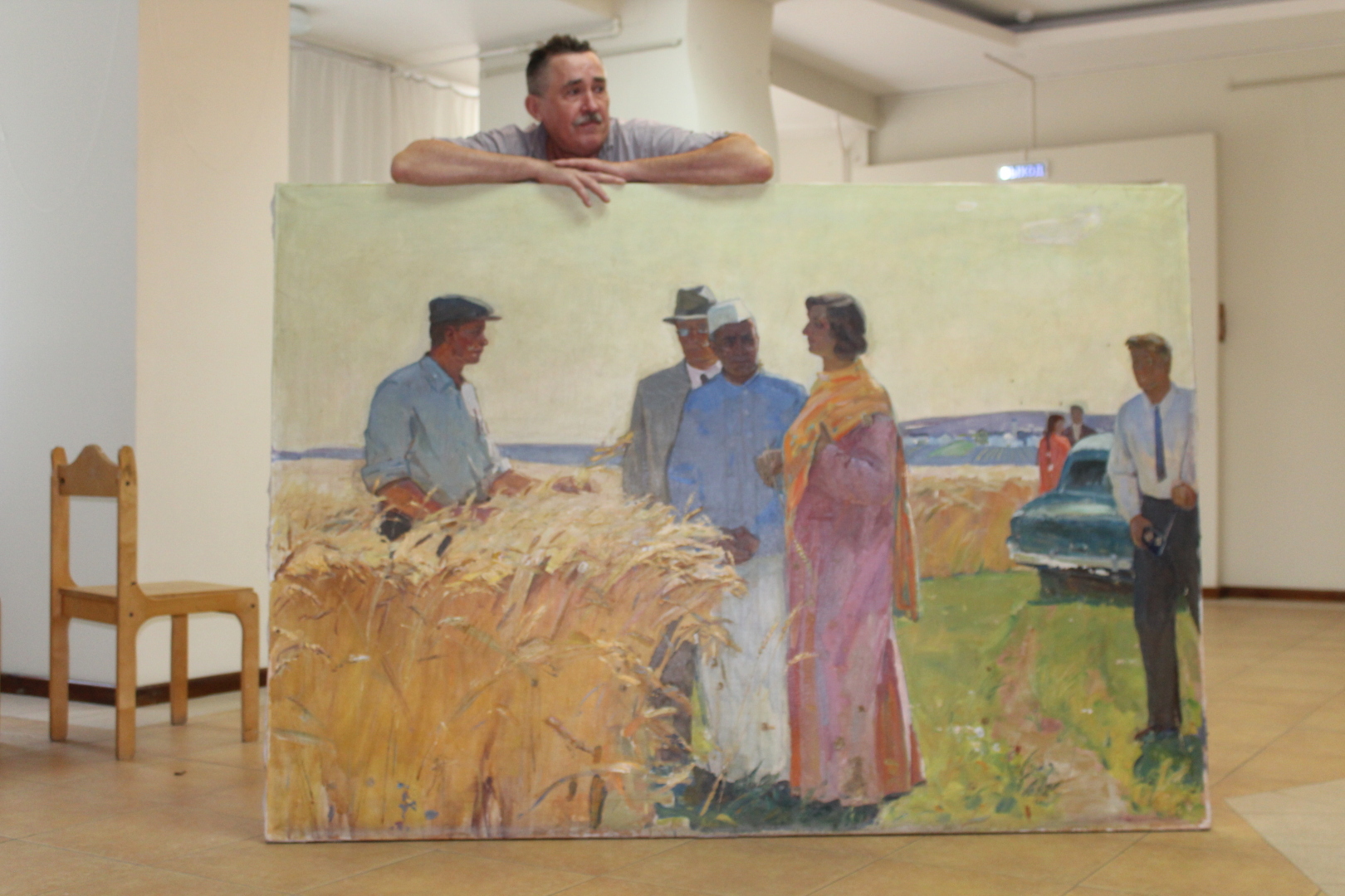 Я пообщалась с Альбертом Васильевичем по телефону. Во время визита Неру и Ганди ему было лет 10, он помнит событие, но без подробностей, поскольку не был его участником. А картина крепко запечатлелась в его памяти. Альберт Васильевич сказал, что изображенный на полотне слева от гостей мужчина, стоящий по пояс в густых колосьях, – это агроном хозяйства Алексей Алексеевич Водолазский. К сожалению, его уже нет в живых. Умер и другой руководитель, который мог бы поведать об этой интереснейшей истории, – председатель колхоза Степан Павлович Ивахненко. Получается, индийская делегация все-таки была у нас в районе?!