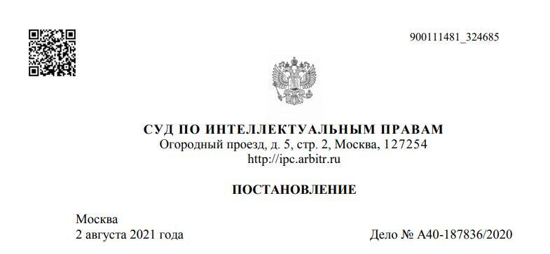 Постановление Суда по интеллектуальным правам от 02.08.2021 N С 01-1017/2021 по делу N А 40-187836/2