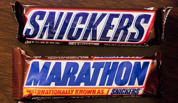 До 1990 года на территории Великобритании и Ирландии батончик продавался под названием Marathon, но позднее стал продаваться по всему миру под названием Snickers. Поклонники старой версии шоколадки утверждают, что Marathon был вкуснее, чем Snickers.