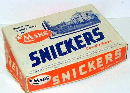 В 1923 году был разработан и рецепт шоколадки Snickers, что в переводе с английского означает «тихое ржание». Шоколадку назвали в честь любимой лошади жены Фрэнка Марса. Супруги были поклонниками конного спорта. К сожалению, лошадь скончалась за несколько месяцев до массового производства шоколадного батончика. В ноябре 1929 года в Чикаго открылась шоколадная фабрика, которая производила шоколадные батончики Snickers. Изначально шоколадка стоила 20 фунтов — по тем временам достаточно дорого. Шоколадный батончик состоял из молочного шоколада, нуги, карамели и 16 арахисовых бобов. Snickers стал особенно популярен в начале 90-х годов во время войны в Персидском заливе. Шоколадкой закусывали американские солдаты.
