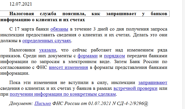 Налоговая служба пояснила, как запрашивает у банков информацию о клиентах и их счетах.