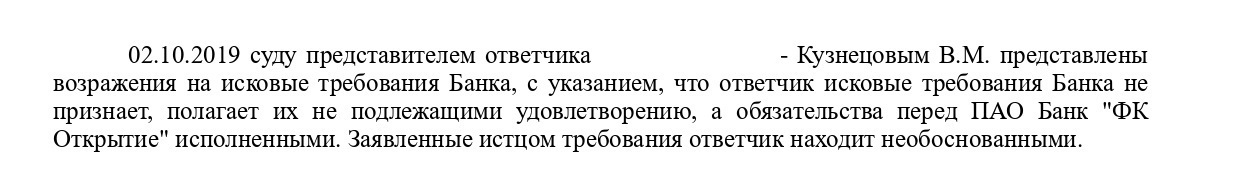 Указанные ранее обстоятельства предоставили мне прекрасную возможность восстановить срок на подачу соответствующего заявления и отменить заочное решение. Суд заочное решение отменил и возобновил производство по делу, предоставив нам возможность для формирования правовой позиции относительно заявленных требований.