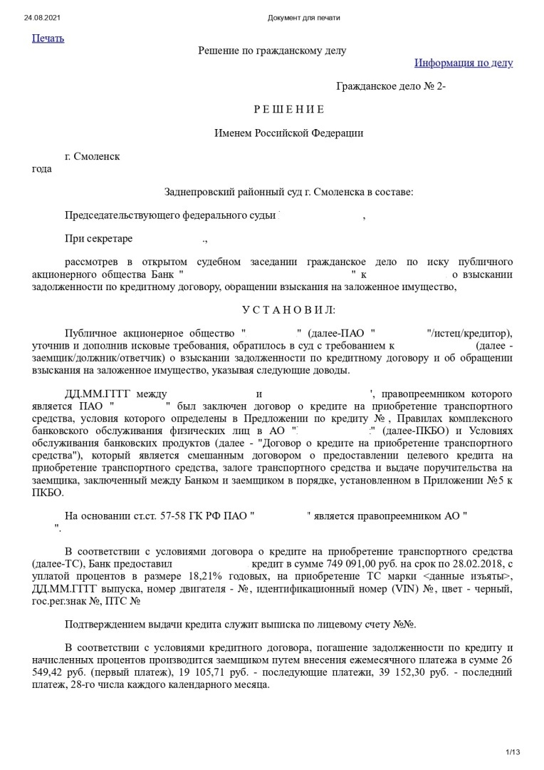 Для большей лаконичности представлю только первую страницу и резолютивную часть заочного решения: