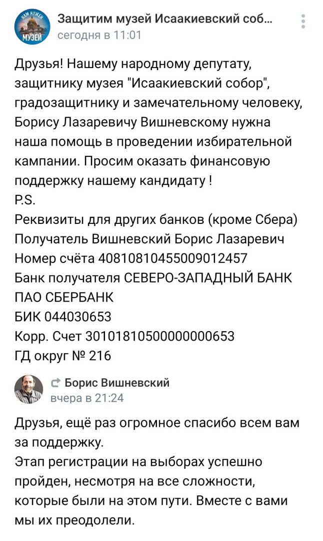 Скриншот страницы группы "Защитим музей Исаакиевский собор" в соцсети "ВКонтакте"