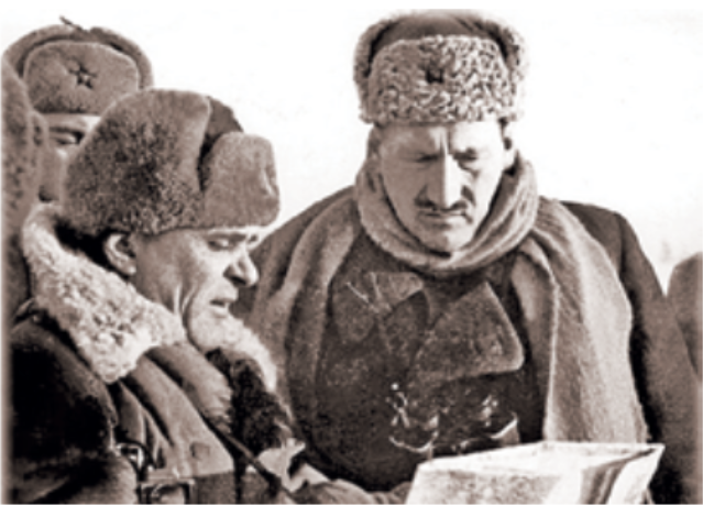 Ржевско-Вяземская операция. Командующий 33-й армией (справа) на передовой, 1942 год.