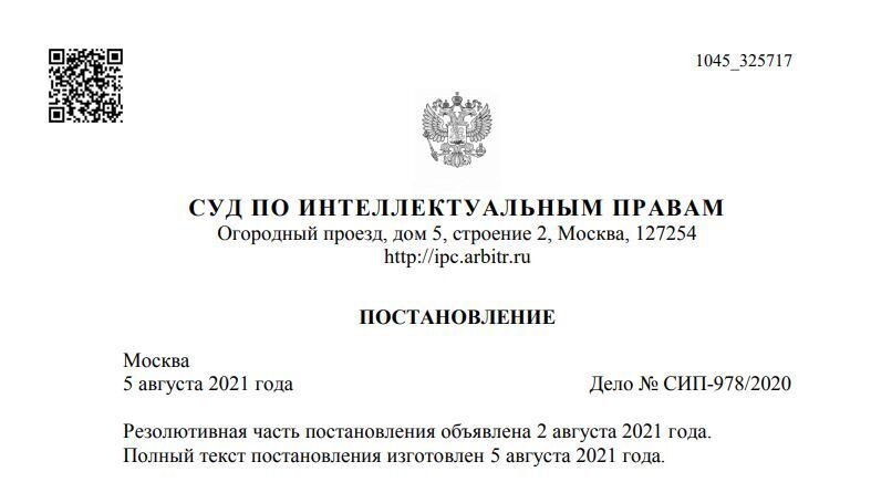 Постановление Президиума Суда по интеллектуальным правам от 05.08.2021 N С 01-1266/2021 по делу N СИ