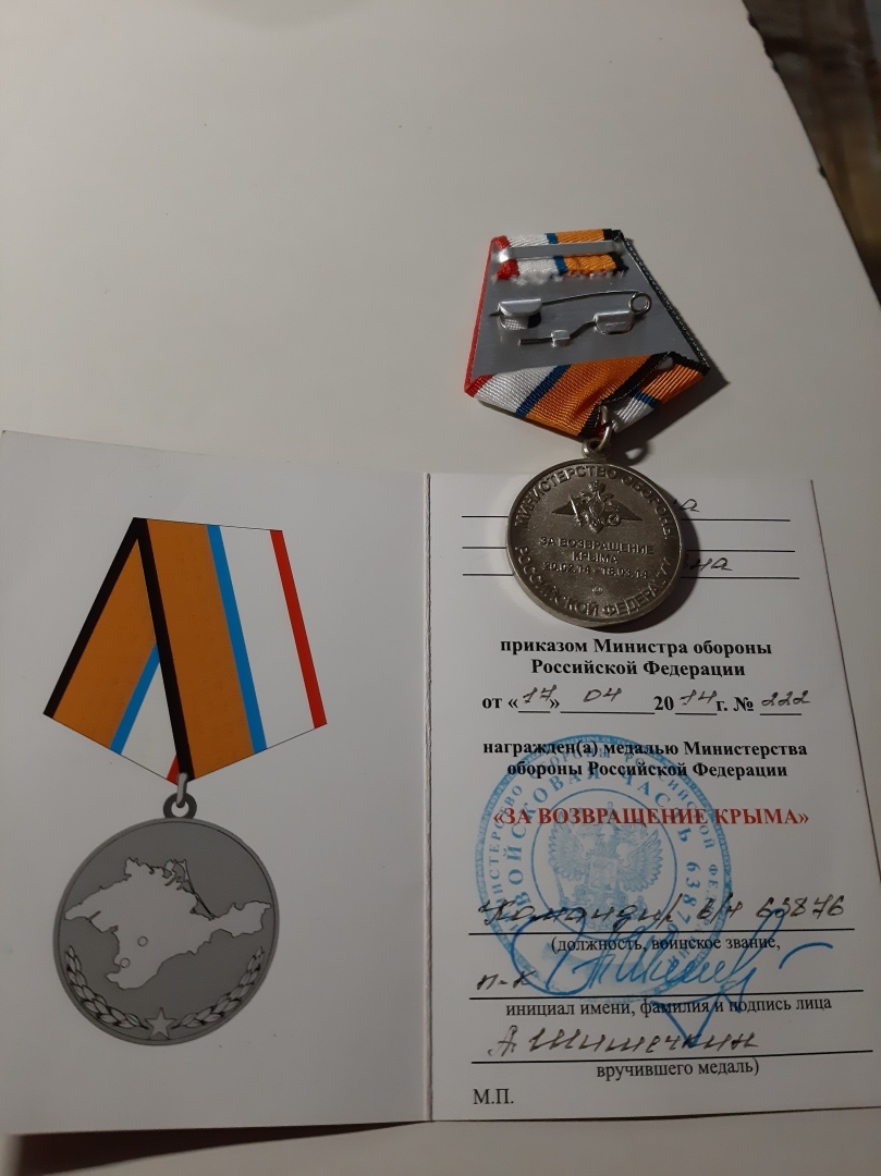 А это фото медали "За возвращение Крыма" и дата 20.02.14 - 18.03.14 года. Так что Ваша хронология тоже не совсем верная.
