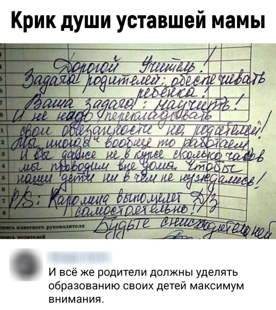 Мне как-то раз ребенок заявил, что он не может решить задачу по математике. Я сел и стал решать ее. В итоге путем размышлений вывел формулу, по которой и решил задачу. А он мне такой говорит: "Так эту формулу мы проходили на прошлом занятии!"....