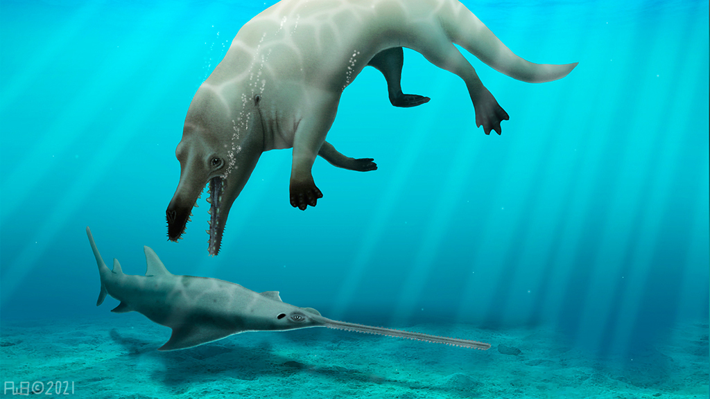 Египетские палеонтологи открыли новый вид древних предков современных китов, который жил на Земле около 43 миллионов лет назад. Хищник весом в 600 килограммов имел четыре лапы, ходил по суше и плавал в воде, а также имел мощную вытянутую челюсть, с помощью которой легко расправлялся с крокодилами и млекопитающими.