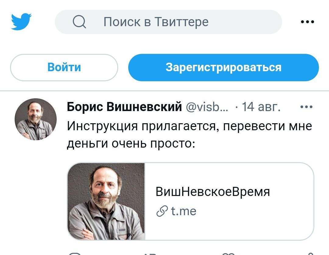 Своеобразный рекламный пост Вишневского Б. Л. в Twitter — главное тут "перевести мне деньги очень просто"