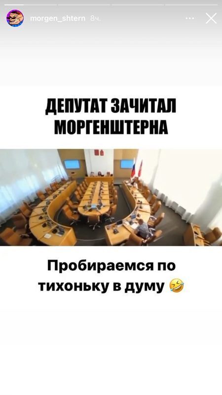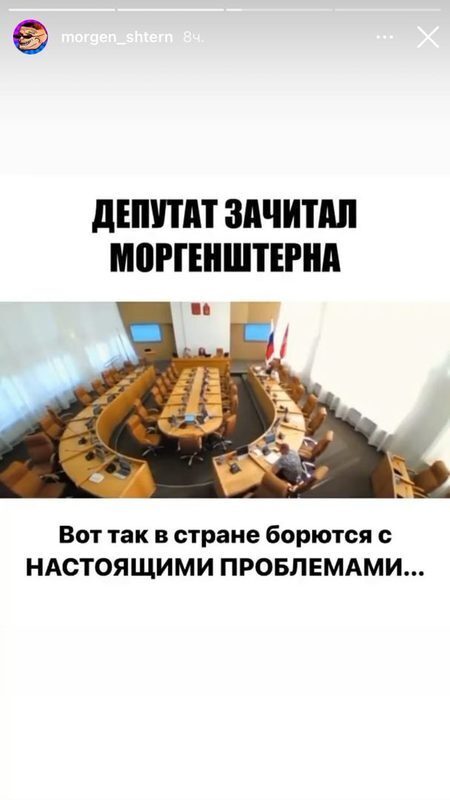 Популярный рэпер Моргенштерн запостил в своем Instagram**** видеозапись с заседания Красноярского горсовета. На кадрах запечатлен депутат Вячеслав Дюков, который цитирует тексты песен артиста, требуя, чтобы концерт, запланированный в Красноярске на 26 сентября, был отменен.