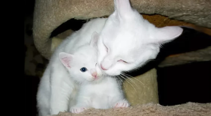 Дома он, наконец, как следует рассмотрел свою находку. Это была кошка с длинной, густой шерстью белого цвета. К ней жался маленький, тоже белый, тщедушный котёнок. Оба были насквозь мокрые. Они сидели посреди коридора в луже от растаявшего снега и дрожали.