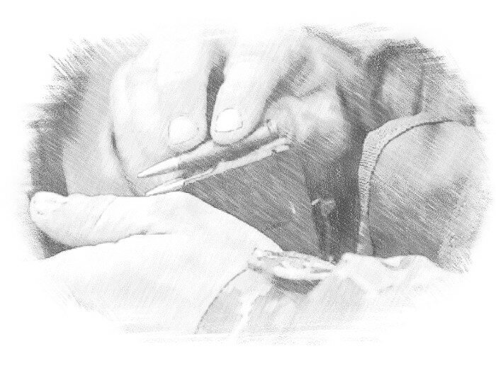 Бойца подкинуло взрывом, уложило на землю; автомат рядом, но тело не слушается, будто — чужое; и не сильно вроде ранен. Слышит приближающиеся голоса, осмотрелся, до автомата меньше метра, но даже пальцем не пошевелить. При этом никакого страха, и в голове полная ясность. Из кустов появляются двое, видят раненного, направляют стволы. Хоть и в беспомощном состоянии боец, но лежит ровно — не паникует. Ну, нет в человеке страха. Всмотрелся — свои, ну и говорит им: мол, свой. Те ему: «Все тут «свои», когда здец пришёл». «В кармане корочка», - убедил тех парализованный.