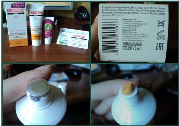 Известное ещё нашим родителям, средство по уходу за волосами паста «Сульсена» – это эмульсия на основе дисульфида селена. Этот дисульфид является себорегулятором, и обладает противоперхотным действием. Паста «Сульсена» вам поможет, если у вас перхоть, тусклые секущиеся волосы, а так же, если они быстро жирнятся, секутся или выпадают. Сера, входящая в состав пасты укрепляет и уплотняет волос изнутри, так что после применения они кажутся толще. Отлично помогает, если вы хотите увеличить промежуток между мытьем головы. Лично могу подтвердить – волосы дольше остаются свежими и изумительно блестят.