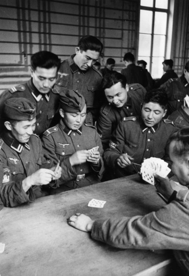 «…Благодаря успехам на Восточном фронте летом и осенью 1941 года Германия захватила в плен сотни тысяч советских солдат. Кроме русских, среди них были представители многих других национальностей, сильно пострадавших при советской власти. Дальнейшее развитие немецкого наступления в направлении Кавказа и приволжских степей натолкнуло руководство вермахта на идею использовать пленных из кавказских и азиатских народов.