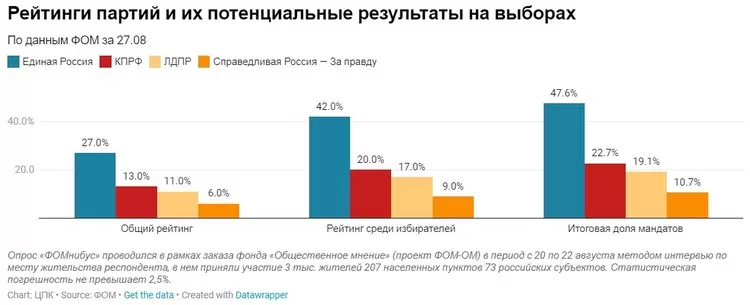 Рейтинг партий перед выборами в Госдуму на сегодня, 28 августа