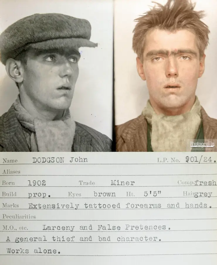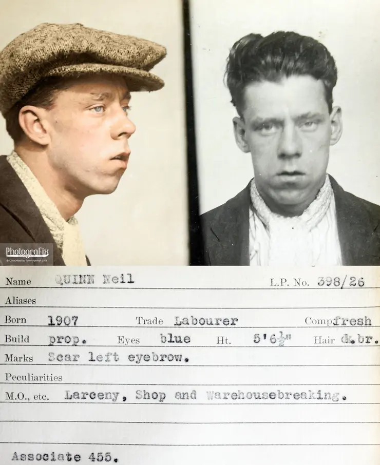 Эти полицейские снимки злодеев 1930-х годов, спрятанные в архивах и музеях Тайн-энд-Уир, являются уникальным свидетельством британской криминальной истории. Большинство изображенных мужчин указаны как рабочие, лоточники и шахтеры, что позволяет предположить, что все они были из самых бедных слоев общества.