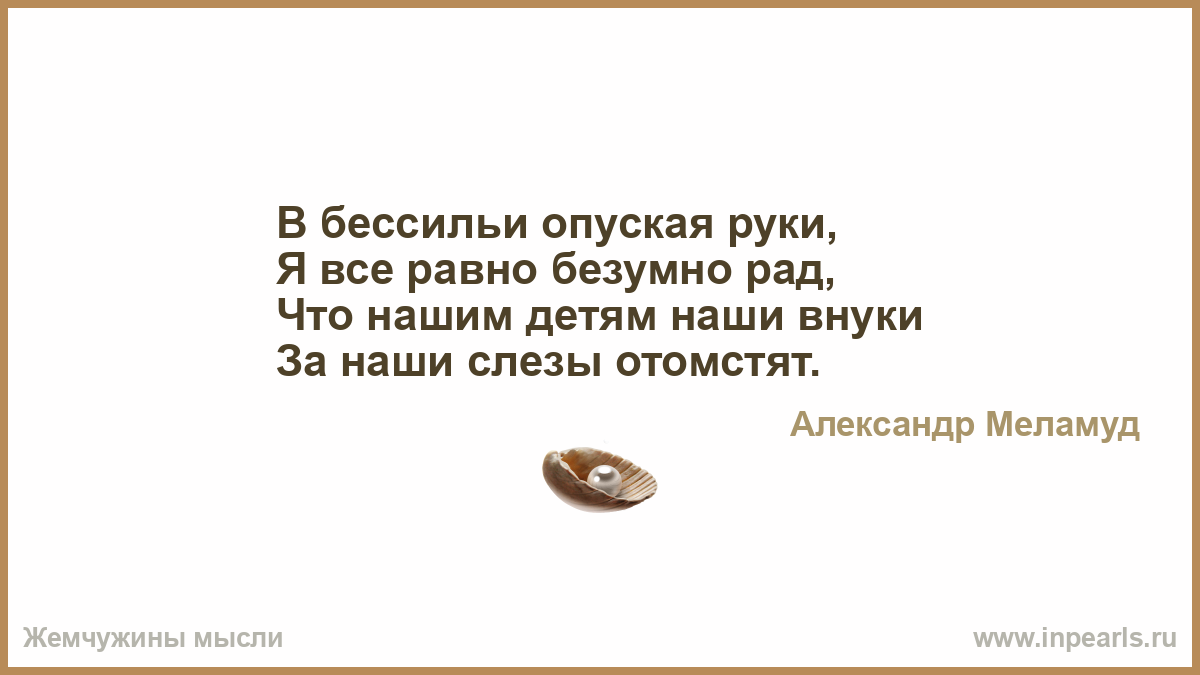 Нашим детям за нас, отомстят наши внуки.