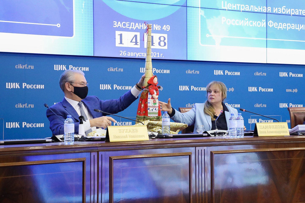 "Я очень рада, что у нас такие члены избирательных комиссий", – сказала председатель ЦИК, принимая подарок.