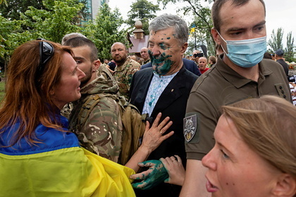Порошенко облили зеленкой на «Марше защитников Украины» в день 30-летия независимости страны. Нападавший был задержан правоохранителями на 72 часа, на данный момент решается вопрос о возбуждении против него уголовного дела по статье о хулиганстве. Сам политик обвинил в произошедшем действующего президента страны Владимира Зеленского.
