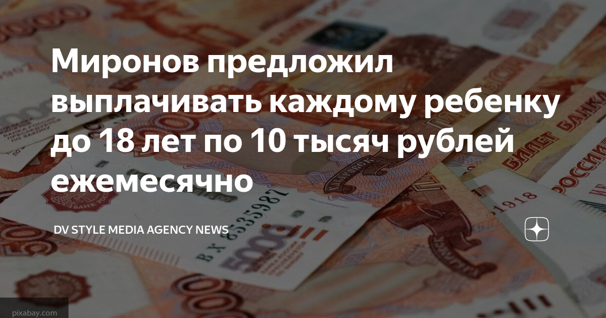 Нововведение предлагается ввести с 01 января 2022 года и ежемесячно выплачивать на несовершеннолетних детей и их родителям пособие в размере 10 000 рублей на каждого члена семьи.