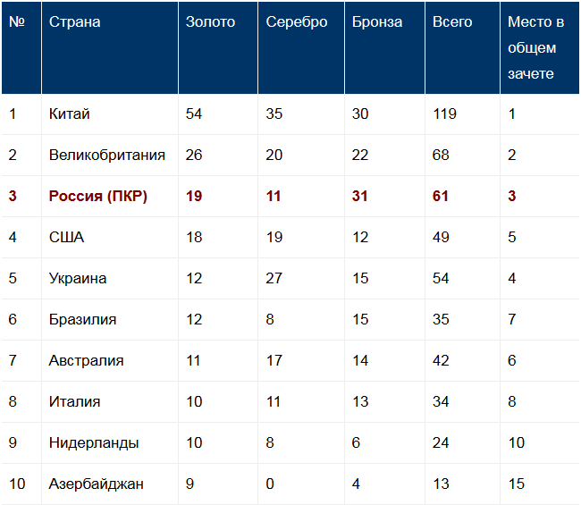 По результатам на 30 августа, в копилке сборной ПКР на Паралимпиаде 2021 уже 61 медаль, из них 19 золотых, 11 серебряных и 31 бронзовая.