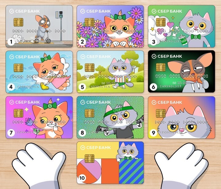 Когда такие карты могут появиться в линейке банка, не сообщается. Но СберКота уже изобразили на одном из пяти вариантов дизайна для детских СберКарт - нового продукта, запущенного 1 сентября 2021 года.