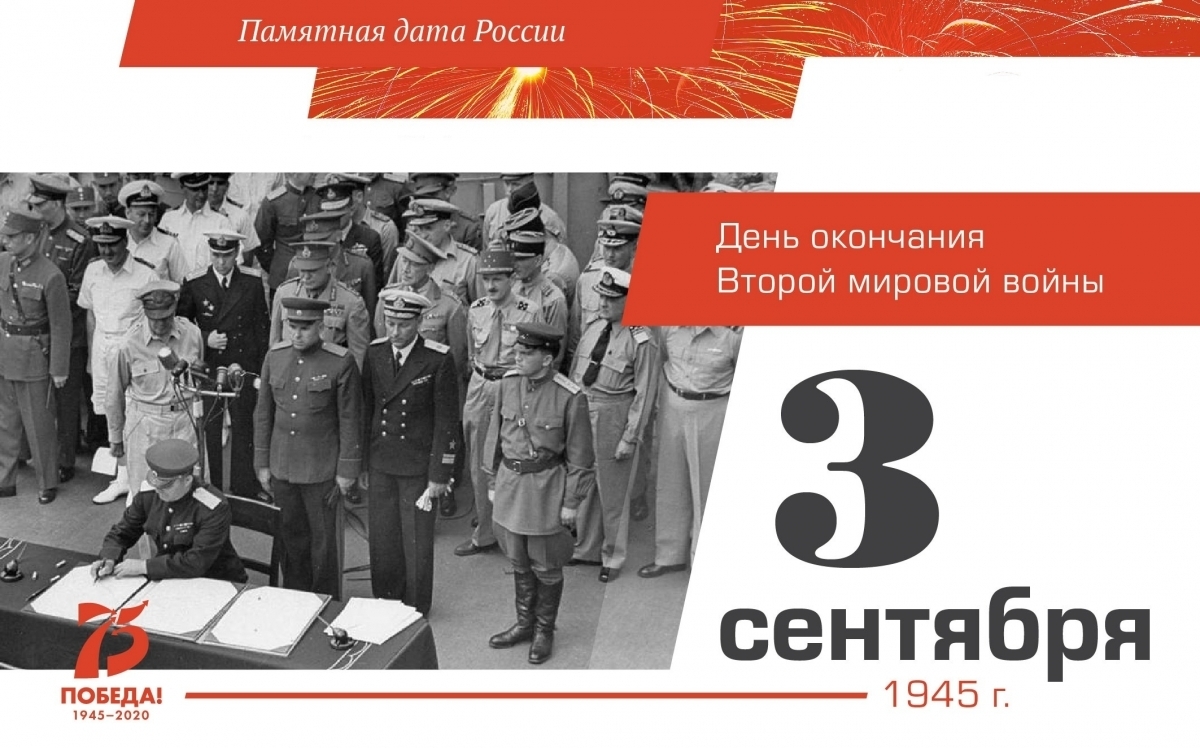 3 сентября отмечается День воинской славы России — День окончания Второй мировой войны (1945 год).