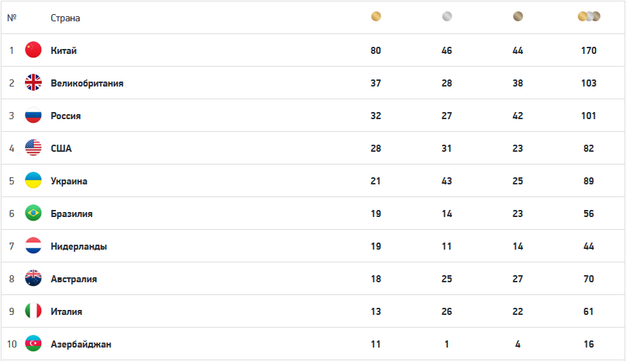 Медальный зачет Паралимпиады 2021 в Токио. Таблица на 03.09.2021
