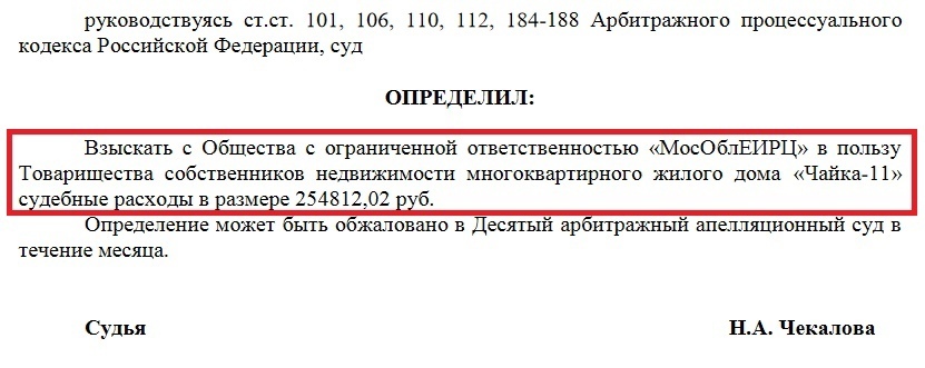 Немного позитива в ленту. 21 июля наконец-то взыскал с моих лучших «друзей» #МосОблЕИРЦ судебные расходы по нашумевшему делу А 41-40599/2018 (https://kad.arbitr.ru/Card/4a0a7270-f69d-4f73-9251-e5..). Суд взыскал все 100% понесённых истцом судебных расходов, посмотрим, что будет в апелляции. А пока, ЕИРЦ помимо 2 с лишнем миллионов, еще теперь должно ТСЖ почти 255 000 руб. Приятно не правда ли?