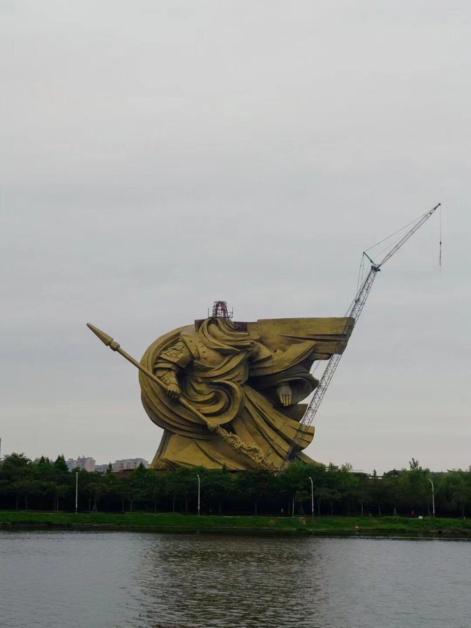 Гигантский памятник стоимостью 26,3 миллиона долларов воздвигли в 2016 году, но он не понравился ни местным жителям, ни центральному правительству. Первые заявили, что позолоченный Гуань Юй портит облик города, а вторые назвали такой дорогой памятник расточительством.