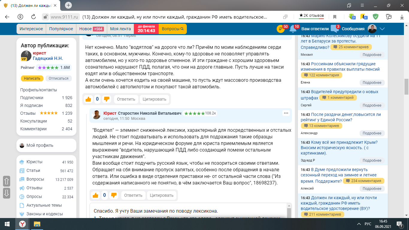 4. По-моему, этим комментарием Вы просто решили повоспитывать новичка. Я не новичок. У меня имеется опыт работы на другом юридическом сайте (269 довольных клиентов). И это не считая работы напрямую с клиентом онлайн и офлайн.