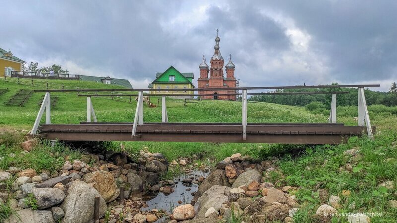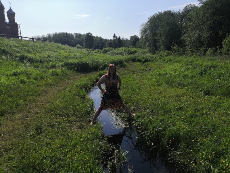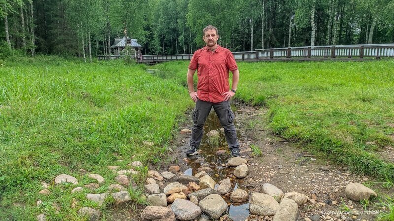 Если пройти чуть дальше часовни, то можно сделать вот такой снимок, на котором Вы можете встать одновременно на обоих берегах Волги. Да, вот этот небольшой ручей и есть та самая река, прикольно! 👍