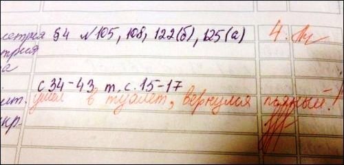 Из самого смешного помню разве что - "сломал линейку об голову ученика" и "разорял живой уголок"