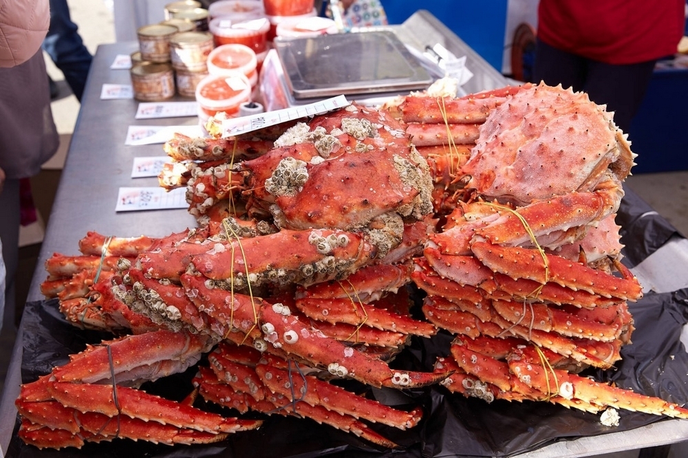К слову о рынках, здесь очень много морепродуктов на любой вкус, начиная с привычной икры и заканчивая гигантскими устрицами, трубачами, икрой морского ежа и т.д. Разброс цен здесь тоже отличается от цен на морепродукты на материке в меньшую сторону.