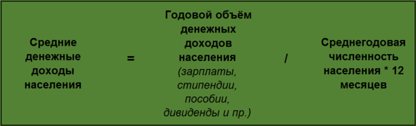 На самом деле ответ здесь прост: средние душевые денежные доходы. Они определяются следующим образом: