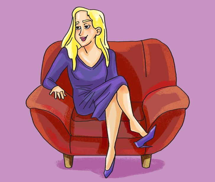 Согласитесь, это уже более открытая поза? Стремясь понравиться мужчине, женщина начинает выставлять себя в наиболее выгодном свете. Она выпрямляется, чтобы подчеркнуть грудь, и, как правило, скрещивает ноги. Сложенные и опущенные вниз руки - сигнал внимания и повышенного интереса к собеседнику.