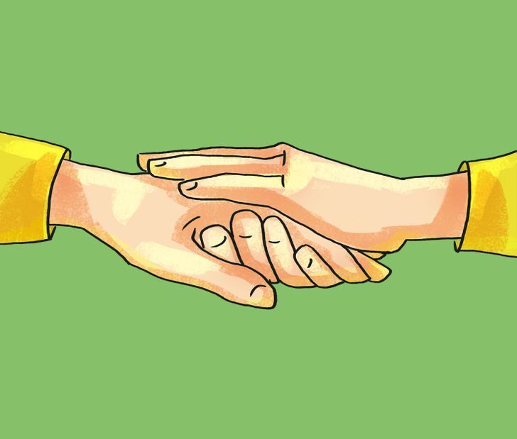 Если свободной рукой собеседник обхватывает вашу кисть, то показывает, что ему можно доверять.