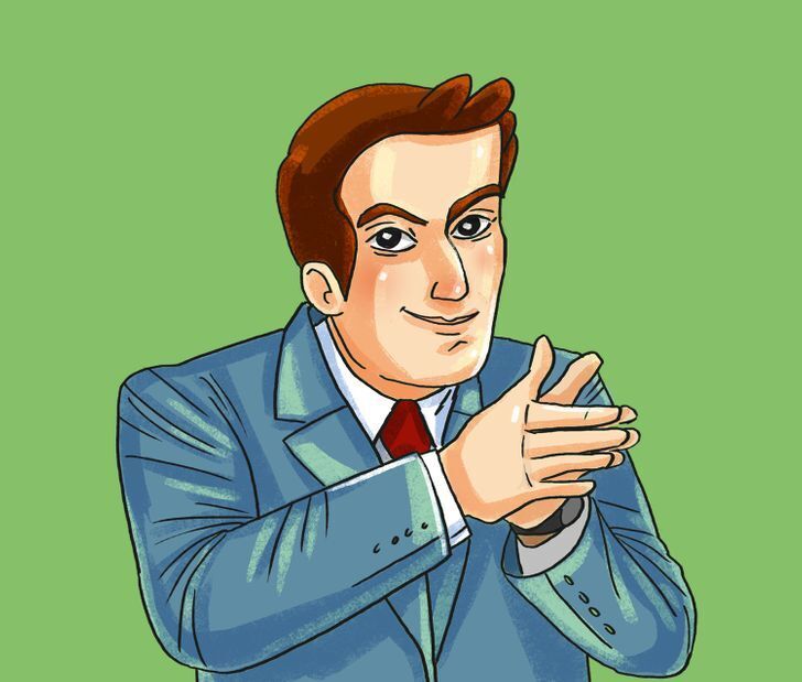 Считается, что руки транслируют то, что думает голова. Потирание ладоней, как правило, выражает положительные ожидания человека, надежду на то, что он в чем-то преуспеет. Словом, именно так мы делаем, когда думаем о предстоящей выгоде.