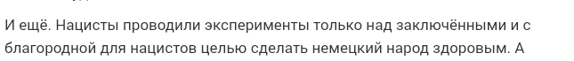 "...Нацисты проводили эксперименты только над заключёнными и с благородной для нацистов целью сделать немецкий народ здоровым... "