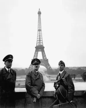 На фотографии 1940 года изображены трое нацистов-завоевателей в Париже на фоне Эйфелевой башни. Через несколько лет один из этих людей, Адольф Гитлер, был убит собственной рукой; другой, Альберт Шпеер, писал мемуары в тюрьме Шпандау, избежав смертного приговора на Нюрнбергском процессе. Но третий, Арно Брекер, был жив и свободен, создавая скульптуры в новой Западной Германии, которые по своей напыщенности и иконографии повторяли скульптуры, созданные им во времена Третьего рейха.