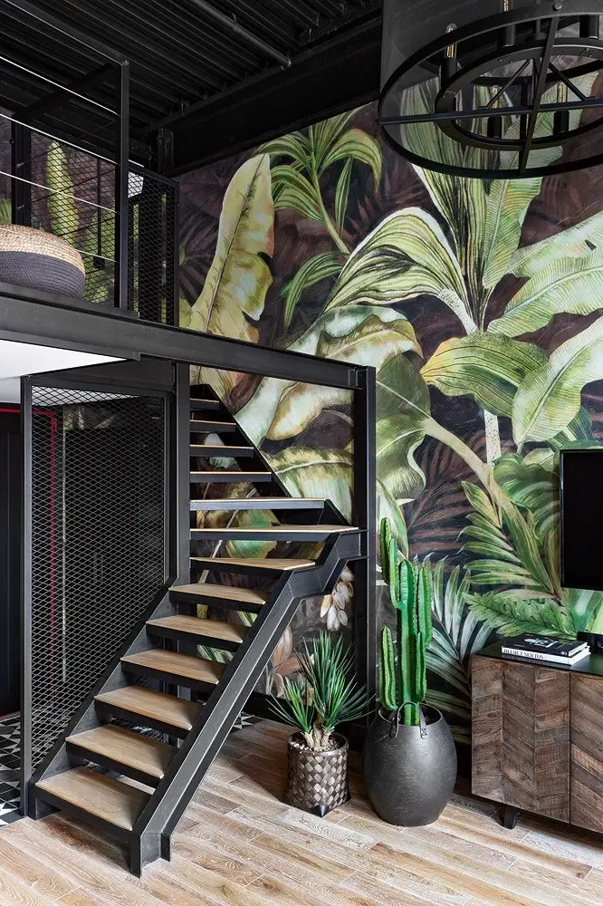 Насчет перехода черной стены мне кажется было бы интереснее, если бы изменилась фактура дерева и лестницы были бы деревянные. Было бы более легкое впечатление от всего дизайна. А так мрачновато, на мой взгляд., получилось...