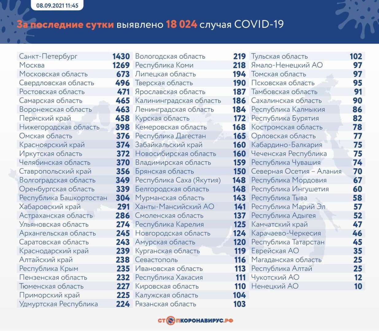 Статистика коронавируса на сегодня, 9 сентября 2021 в России, Москве, СПб: сколько больных, умерло?
