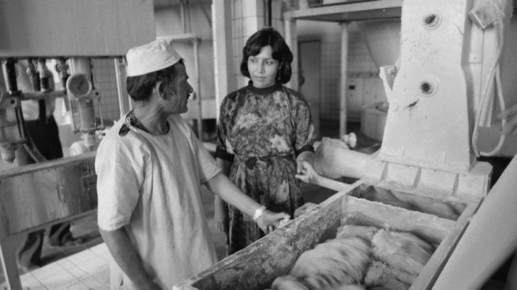 Демократическая Республика Афганистан. Кабул. 1 августа 1987 г. Технолог Латифа, окончившая Кабульский политехнический институт, во время беседы с рабочим одного из цехов Кабульского хлебокомбината. Фото © ТАСС / Надеждин Георгий