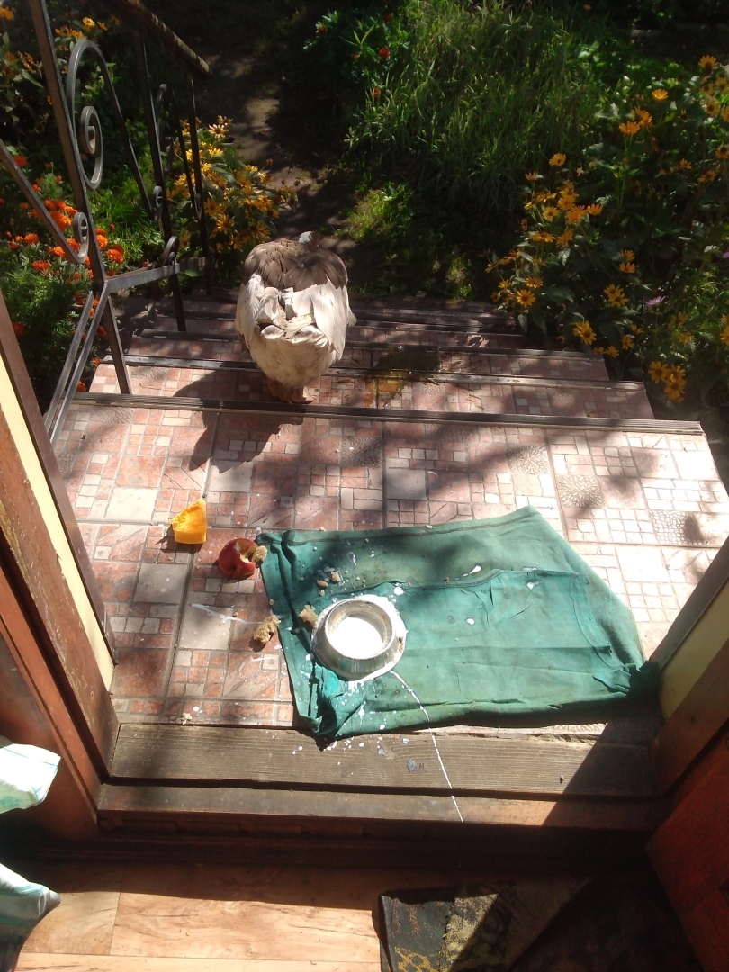 Гуси бывают ручными. Девочка появилась в прошлом году, осенью. Купила с рук, притащила в мешке, она жалобно ворочались и кричала. Поселила к козе, через перегородку. Уложила на сено и, дала теплого хлеба с водой, гусюшка сделала несколько шагов, неуклюже переминаясь ластами, жадно кинулась к еде и стала глотать, высоко задирая шею, клюнув пару раз за руку, С каждым днём привыкала и приветствовала громким голосом. Приближаясь к лицу, внимательно меня рассматривала, поворачивая головку на бок. Взгляд был осмысленный, пытаясь понять, что я говорю... продолжение следует