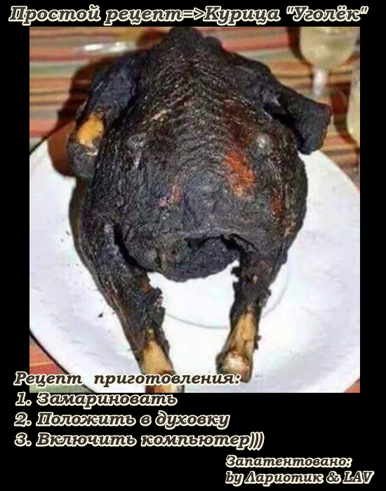 Например:курица по рецепту уголёк.