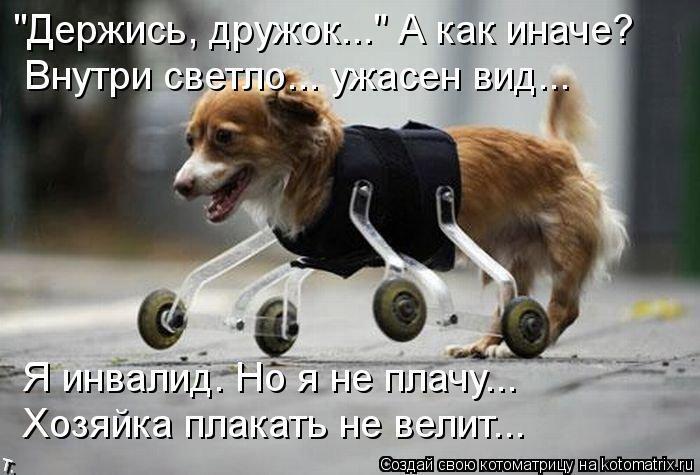 таня, Сергей мне позвонил и пожаловался" трудно пробовать одеть протезы тому,кто пострадал за свою доверчивость." Он же кусается и плачет. Он то думает,что ему опять хотят отрубить лапы( Сергей сказал,что судя по культям-ему лапы отрубили).