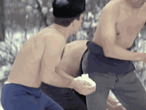 14. Сцена, где герои растирают друг друга снегом – чистая импровизация самих артистов. Леонов, Вицин и Крамаров объявили режиссеру, что не станут раздеваться на морозе. В итоге он планировал снять обычную утреннюю зарядку в одежде. Но «Василий Алибабаевич» в тот день опоздал на съемки и, естественно, не был в курсе этого демарша. Когда артист выбежал на улицу в плавках, остальным пришлось последовать его примеру. В отместку Крамаров решил натереть Раднэра Муратова снегом. К ним подскочил Вицин и тоже включился в игру. В итоге именно этот дубль и вошел в финальную версию кинокартины.
