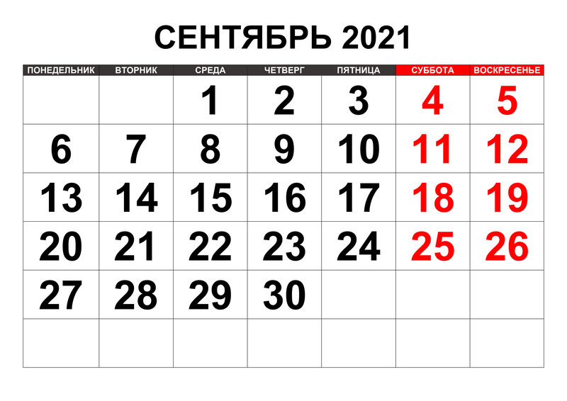 Производственный календарь на сентябрь 2021: выходные, праздничные и рабочие дни. Как отдыхаем?