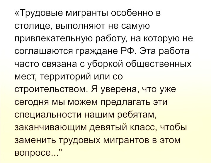 Бессараб считает, что после девятого класса многие дети не имеют возможности продолжить обучение и данным фактом можно воспользоваться для решения проблемы с нехваткой трудовых мигрантов:
